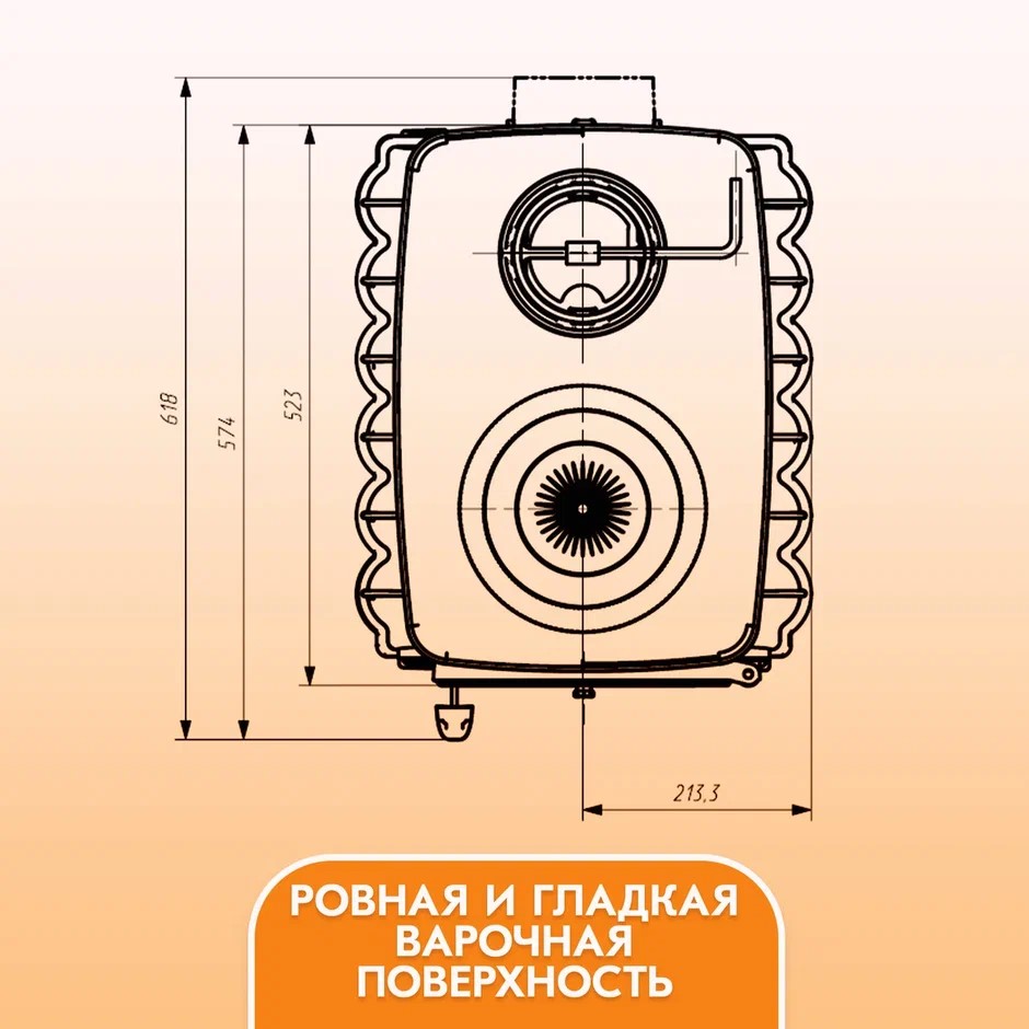 В конструкции дровяной печи «Бахта» предусмотрена варочная панель, на которой можно вскипятить чайник, приготовить или разогреть вашу любимую еду.