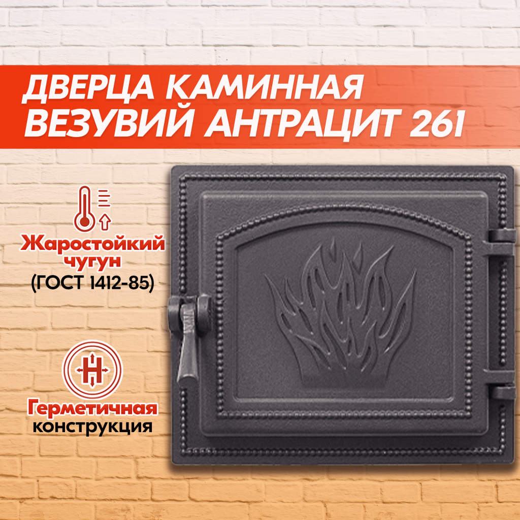 Дверка каминная Везувий 261 (Антрацит), герметичная