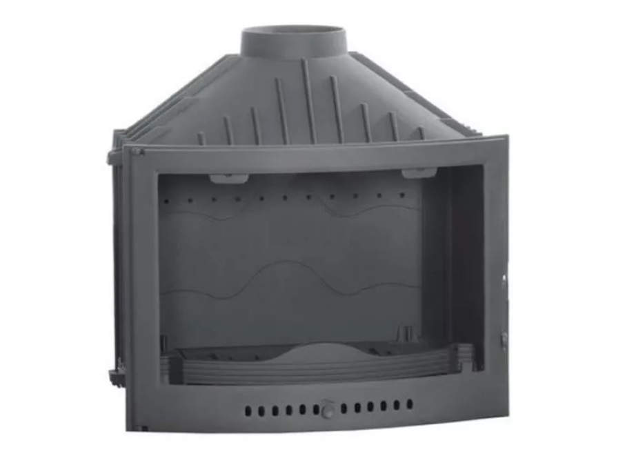 Чугунная каминная топка с панорамным закругленным стеклом.