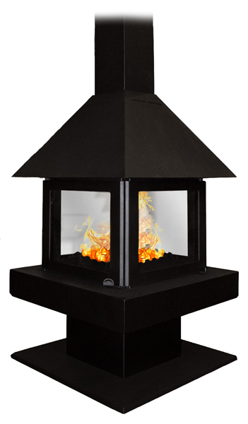 Камин остеклен с четырех сторон. Вы можете сделать его центром гостиной и смотреть на огонь с любой точки. Такие стекла делаются всего в 2 странах: Германии и Японии. Оно выдерживает температуру до 750 градусов. Но если ударить кочергой, то может треснуть. Через стекло вы любуетесь огнем, следите за прогоранием дров и подкладкой новых.