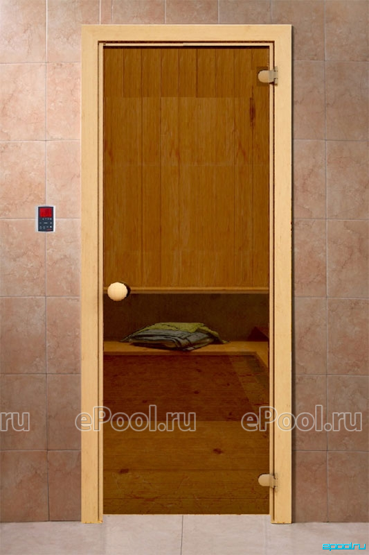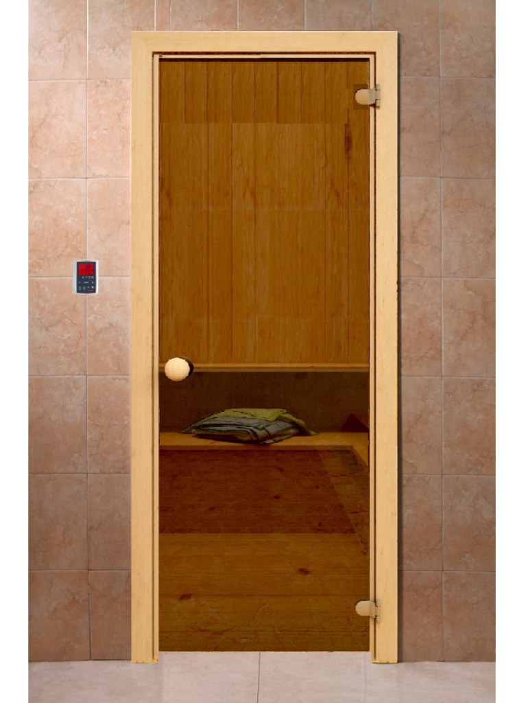 Дверь для сауны DoorWood (ДорВуд) "Бронза" круглая ручка 1900х700, 6мм, 2 петли (коробка хвоя) в Перми | Доставка по России