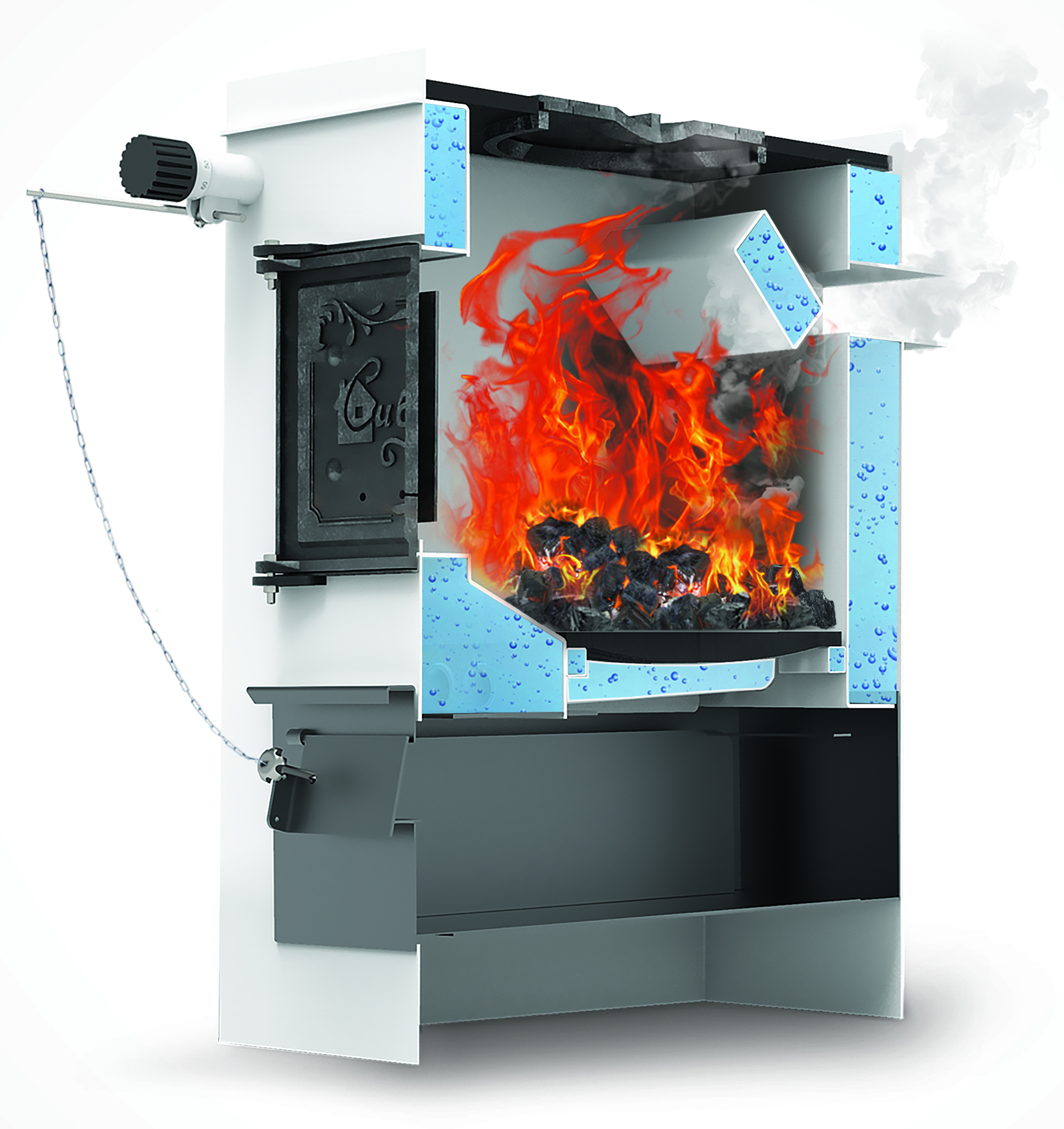 Экономичность: специально разработанная конструкция котла позволяет максимально использовать тепловую энергию при сгорании топлива, при этом стальную плиту можно использовать для приготовления пищи и подогрева воды.