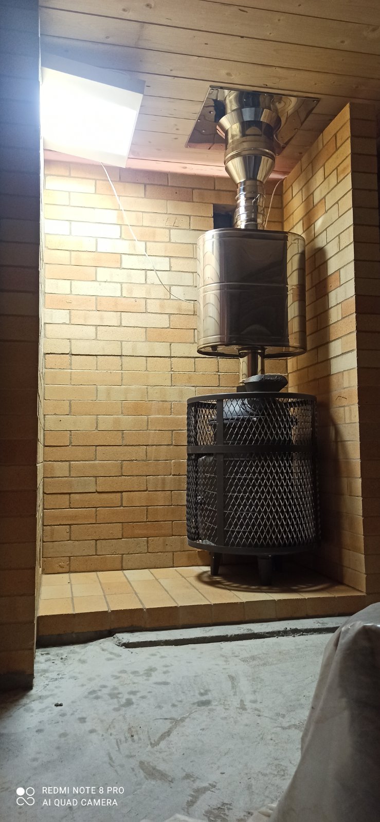 Монтаж печи Атмосфера, установка дымохода, кладка портала с конвекционными дверками.